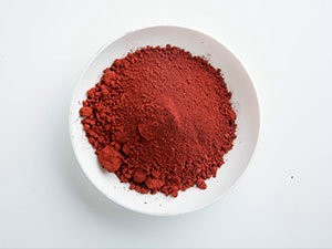 有天然的和人造的兩種。天然的稱西紅,是基本上純粹的氧化鐵,為紅色粉末。由于方法和操作條件的不同,它們的晶體結構和物理性狀都有很大的差別,色澤變動于橙色到藍光至紫光之間。遮蓋力和著色力都很大。密度5-5.25。有優越的耐光、耐高溫性能,并耐大氣影響、耐污濁氣體、耐一切堿類。只有在濃酸中加熱的情況下才會逐漸溶解。